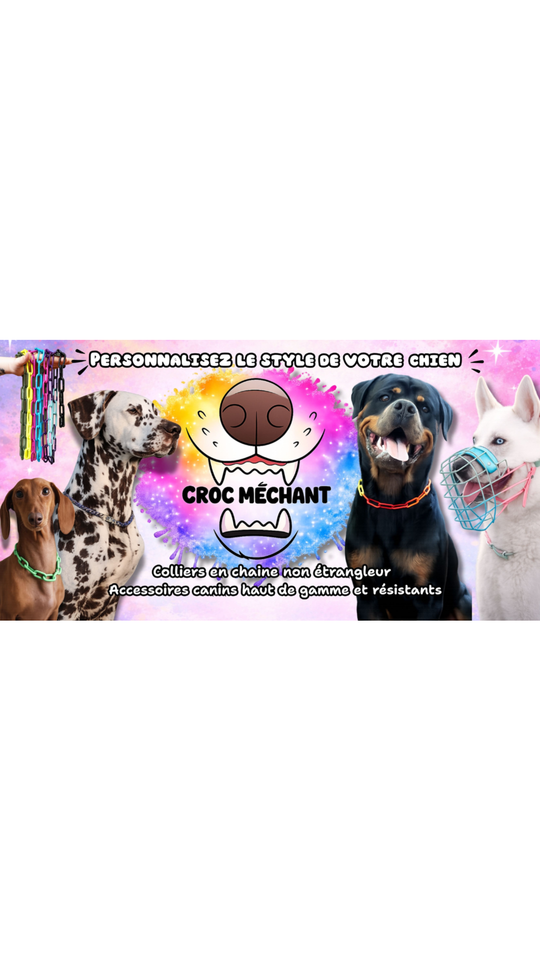 Croc Méchant est une boutique spécialisée dans les chaînes non étrangleur pour chiens, alliant sécurité et style. Les modèles sont conçus pour ne pas comprimer le cou du chien et transformer un accessoire fonctionnel en véritable élément d’identité.
